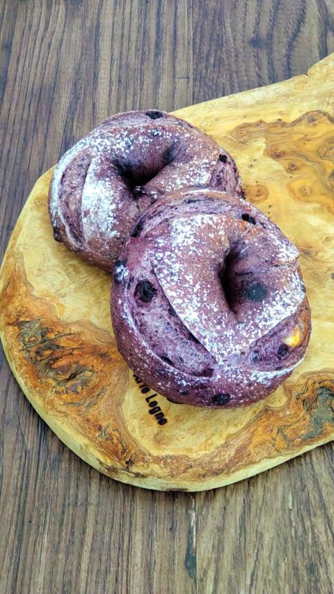 今回はブルーベリーを練り込んだ生地にクリームチーズで作ったフィリングを合わせます。