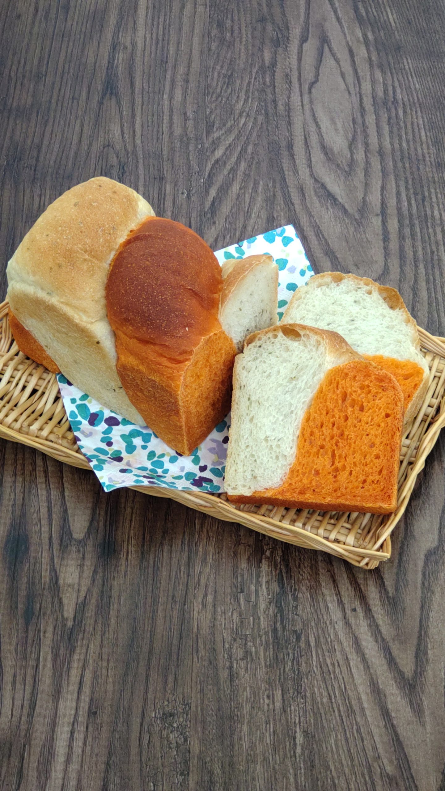 『 トマトとオレガノのパンドミ 』 トマト生地とオレガノ生地のコントラストが良いでしょう? チーズをのせてトースト + ブラックペッパーをガリガリ がおすすめです。 2色生地の扱い、トマト生地の色の出し方がポイントです。 …